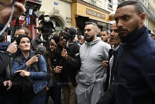 Caption : "Marche de la colère" des policiers qui manifestent pour protester contre leurs conditions de travail, le fort taux de suicide et leurs retraites. Eric Drouet, l'un des leaders des Gilets Jaunes, venu en marge de la manifestation pour rappeler les "violences policières" /// "Walk of anger" of the police demonstrating to protest their working conditions, the high rate of suicide and their pensions. Eric Drouet, one of the leaders of the Yellow Vests, came on the sidelines of the demonstration to recall the "police violence" - Paris - 02/10/2019 - Photo © Lionel Préau +33 (0)6 68 12 83 77