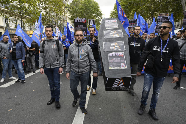 Légende : "Marche de la colère" des policiers qui manifestent pour protester contre leurs conditions de travail, le fort taux de suicide et leurs retraites /// "Walk of anger" of the police demonstrating to protest their working conditions, the high rate of suicide and their pensions - Paris - 02/10/2019 - Photo © Lionel Préau +33 (0)6 68 12 83 77