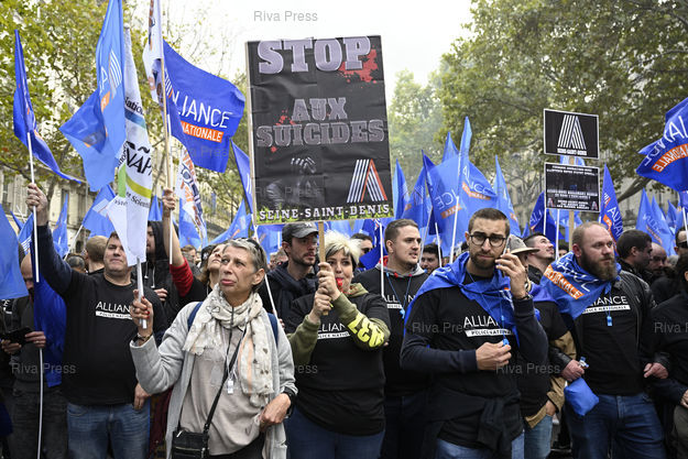 Légende : "Marche de la colère" des policiers qui manifestent pour protester contre leurs conditions de travail, le fort taux de suicide et leurs retraites /// "Walk of anger" of the police demonstrating to protest their working conditions, the high rate of suicide and their pensions - Paris - 02/10/2019 - Photo © Lionel Préau +33 (0)6 68 12 83 77