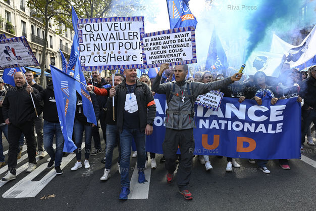 Légende : "Marche de la colère" des policiers qui manifestent pour protester contre leurs conditions de travail, le fort taux de suicide et leurs retraites /// "Walk of anger" of the police demonstrating to protest their working conditions, the high rate of suicide and their pensions - Paris - 02/10/2019 - Photo © Lionel Préau +33 (0)6 68 12 83 77
