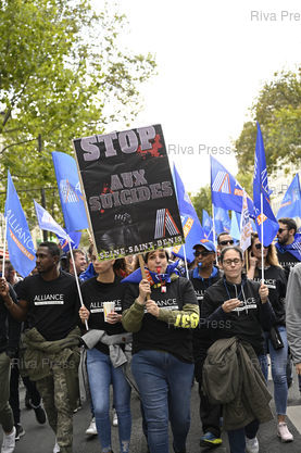 Légende : "Marche de la colère" des policiers qui manifestent pour protester contre leurs conditions de travail, le fort taux de suicide et leurs retraites /// "Walk of anger" of the police demonstrating to protest their working conditions, the high rate of suicide and their pensions - Paris - 02/10/2019 - Photo © Lionel Préau +33 (0)6 68 12 83 77