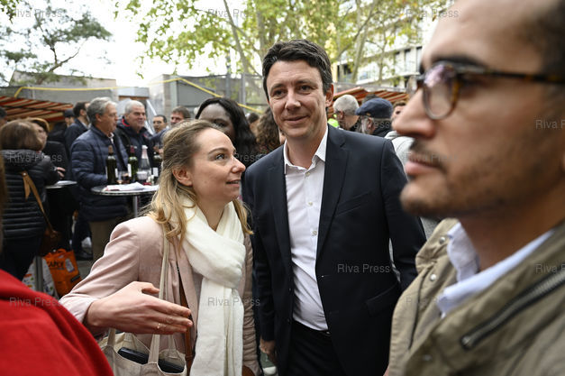 Légende : Benjamin Griveaux, candidat LREM à la mairie de Paris, visite le Marché des Pays de l'Aveyron, avec Marion Giroud /// Benjamin Griveaux, LREM candidate for mayor of Paris, visits the Aveyron Country Market, with Marion Giroud - Paris - 12/10/2019 - Photo © Lionel Préau +33 (0)6 68 12 83 77