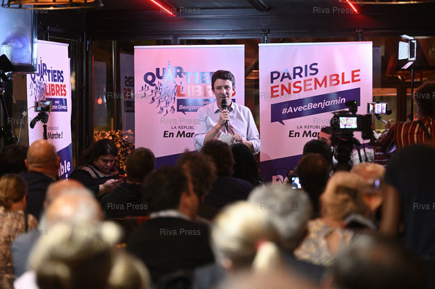 Caption : 3ème "Quartiers Libres" avec Benjamin Griveaux, candidat LREM aux élections municipales à la mairie de Paris, dans le quartier Dareau, Au Réveil Samaritain /// 3rd "Quartiers Libres" with Benjamin Griveaux, LREM candidate for the municipal elections for mayor of Paris, in the district of Dareau, "Au Réveil Samaritain" - Paris - 16/10/2019 - Photo © Lionel Préau +33 (0)6 68 12 83 77