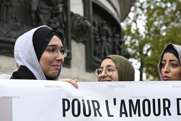 Légende : Rassemblement contre "l'islamophobie" Place de la République après qu'un élu du Rassemblement National demande au Conseil régional de Bourgogne-Franche-Comté, le 11 octobre, à une mère de famille portant le hijab de retirer son voile islamique, et que le ministre de l'éducation nationale affirme que "le voile n'est pas souhaitable dans notre société" /// Rally against "Islamophobia" Place de la République after a member of the far-right Rassemblement National Party asks at the Regional Council of Bourgogne-Franche-Comté, October 11, a mother wearing the hijab to remove her Islamic veil, and the minister of national education says that "the veil is not desirable in our society" - Paris - 19/10/2019 - Photo © Lionel Préau +33 (0)6 68 12 83 77