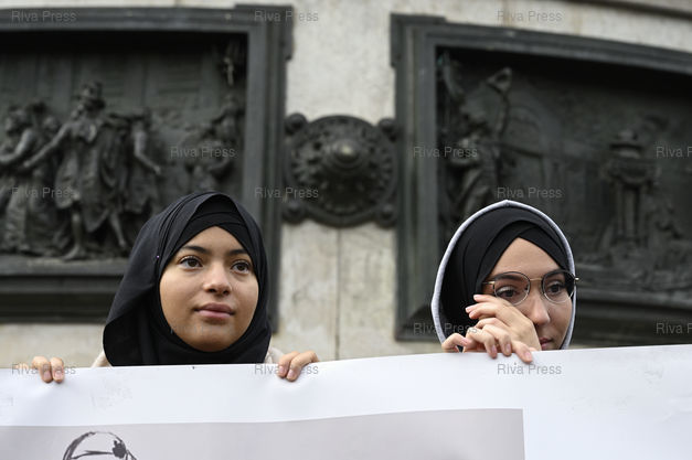 Légende : Rassemblement contre "l'islamophobie" Place de la République après qu'un élu du Rassemblement National demande au Conseil régional de Bourgogne-Franche-Comté, le 11 octobre, à une mère de famille portant le hijab de retirer son voile islamique, et que le ministre de l'éducation nationale affirme que "le voile n'est pas souhaitable dans notre société" /// Rally against "Islamophobia" Place de la République after a member of the far-right Rassemblement National Party asks at the Regional Council of Bourgogne-Franche-Comté, October 11, a mother wearing the hijab to remove her Islamic veil, and the minister of national education says that "the veil is not desirable in our society" - Paris - 19/10/2019 - Photo © Lionel Préau +33 (0)6 68 12 83 77