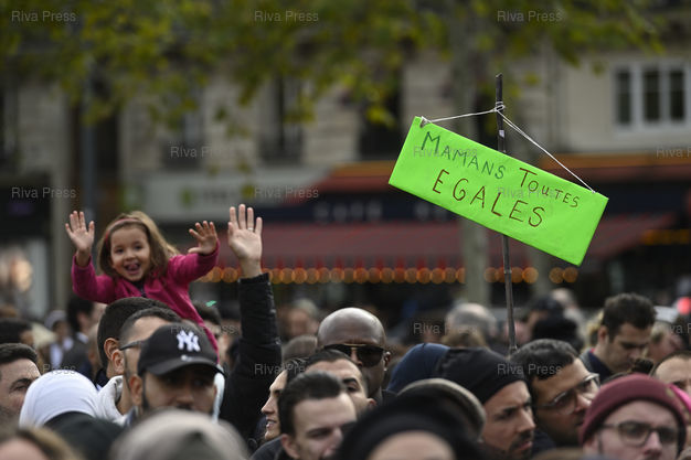 Légende : Rassemblement contre "l'islamophobie" Place de la République après qu'un élu du Rassemblement National demande au Conseil régional de Bourgogne-Franche-Comté, le 11 octobre, à une mère de famille portant le hijab de retirer son voile islamique, et que le ministre de l'éducation nationale affirme que "le voile n'est pas souhaitable dans notre société" /// Rally against "Islamophobia" Place de la République after a member of the far-right Rassemblement National Party asks at the Regional Council of Bourgogne-Franche-Comté, October 11, a mother wearing the hijab to remove her Islamic veil, and the minister of national education says that "the veil is not desirable in our society" - Paris - 19/10/2019 - Photo © Lionel Préau +33 (0)6 68 12 83 77