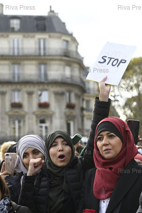 Légende : Rassemblement contre "l'islamophobie" Place de la République après qu'un élu du Rassemblement National demande au Conseil régional de Bourgogne-Franche-Comté, le 11 octobre, à une mère de famille portant le hijab de retirer son voile islamique, et que le ministre de l'éducation nationale affirme que "le voile n'est pas souhaitable dans notre société" /// Rally against "Islamophobia" Place de la République after a member of the far-right Rassemblement National Party asks at the Regional Council of Bourgogne-Franche-Comté, October 11, a mother wearing the hijab to remove her Islamic veil, and the minister of national education says that "the veil is not desirable in our society" - Paris - 19/10/2019 - Photo © Lionel Préau +33 (0)6 68 12 83 77
