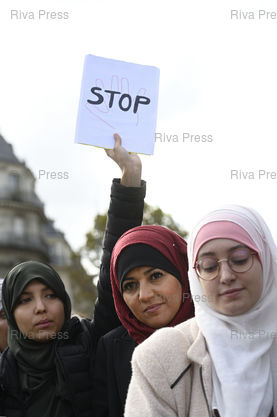 Légende : Rassemblement contre "l'islamophobie" Place de la République après qu'un élu du Rassemblement National demande au Conseil régional de Bourgogne-Franche-Comté, le 11 octobre, à une mère de famille portant le hijab de retirer son voile islamique, et que le ministre de l'éducation nationale affirme que "le voile n'est pas souhaitable dans notre société". A droite Maryam Pougetoux, une responsable de l'Unef à Paris dont le port du voile avait été jugé "choquant" par le ministre de l'Intérieur /// Rally against "Islamophobia" Place de la République after a member of the far-right Rassemblement National Party asks at the Regional Council of Bourgogne-Franche-Comté, October 11, a mother wearing the hijab to remove her Islamic veil, and the minister of national education says that "the veil is not desirable in our society". On the right, Maryam Pougetoux, a manager of the Unef student union in Paris whose wearing of the veil was considered "shocking" by the Minister of the Interior - Paris - 19/10/2019 - Photo © Lionel Préau +33 (0)6 68 12 83 77