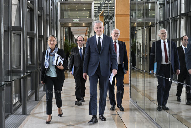 Légende : Remise du rapport de Jean-Martin Folz "La construction de l'EPR de Flamanville" à Bruno Le Maire, ministre de l'Economie et des Finances, et à Jean-Bernard Lévy, PDG d'EDF. En présence d'Elisabeth Borne, ministre de la Transition écologique et solidaire /// Presentation of Jean-Martin Folz's report "The construction of the Flamanville EPR" (Evolutionary Power Reactor) to Bruno Le Maire, Minister of Economy and Finance, and Jean-Bernard Lévy, Chairman and CEO of EDF. With Elisabeth Borne, Minister of Ecological and Solidarity Transition - Paris - 28/10/2019 - Photo © Lionel Préau +33 (0)6 68 12 83 77