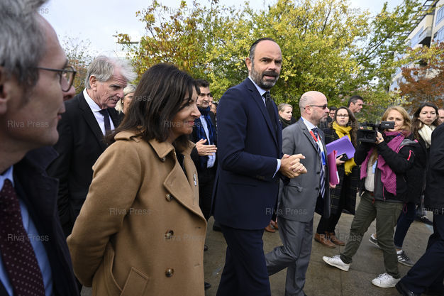 Légende : Lancement des travaux du futur village Olympique et Paralympique. Edouard Philippe, premier ministre, Anne Hidalgo, maire de Paris /// Launch of the works of the future Olympic and Paralympic Village. Edouard Philippe, Prime Minister, Anne Hidalgo, Mayor of Paris - Saint-Ouen - 04/11/2019 - Photo © Lionel Préau +33 (0)6 68 12 83 77