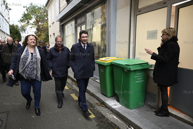 Caption : Benjamin Griveaux, candidat LREM aux élections municipales à Paris, se rend dans le 20eme arrondissement sur le thème de la sécurité et de la police municipale. En présence de Frédérique Calendra, maire du 20eme /// Benjamin Griveaux, LREM candidate for the municipal elections in Paris, in the 20th arrondissement on the theme of security and the municipal police. With Frédérique Calendra, mayor of the 20th - Paris - 06/11/2019 - Photo © Lionel Préau +33 (0)6 68 12 83 77
