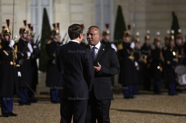 Légende : Emmanuel Macron reçoit les chefs d'Etat et de gouvernement et dirigeants d'organisations internationales participant au 2ème Forum de Paris sur la Paix pour un dîner au palais de l'Elysée. Emmanuel Macron accueille Christian Ntsay, premier ministre de Madagascar /// Emmanuel Macron receives heads of state and government and leaders of international organizations participating in the 2nd Paris Peace Forum for a dinner at the Elysée Palace. Emmanuel Macron welcomes Christian Ntsay, Prime Minister of Madagascar - Paris - 11/11/2019 - Photo © Lionel Préau +33 (0)6 68 12 83 77
