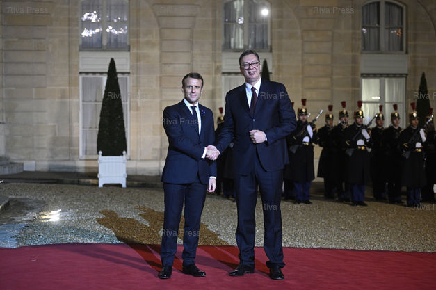 Légende : Emmanuel Macron reçoit les chefs d'Etat et de gouvernement et dirigeants d'organisations internationales participant au 2ème Forum de Paris sur la Paix pour un dîner au palais de l'Elysée. Emmanuel Macron accueille Aleksandar Vucic, président de la république de Serbie /// Emmanuel Macron receives heads of state and government and leaders of international organizations participating in the 2nd Paris Peace Forum for a dinner at the Elysée Palace. Emmanuel Macron welcomes Aleksandar Vucic, President of the Republic of Serbia - Paris - 11/11/2019 - Photo © Lionel Préau +33 (0)6 68 12 83 77