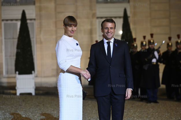 Légende : Emmanuel Macron reçoit les chefs d'Etat et de gouvernement et dirigeants d'organisations internationales participant au 2ème Forum de Paris sur la Paix pour un dîner au palais de l'Elysée. Emmanuel Macron accueille Kersti Kaljulaid, présidente de la république d'Estonie /// Emmanuel Macron receives heads of state and government and leaders of international organizations participating in the 2nd Paris Peace Forum for a dinner at the Elysée Palace. Emmanuel Macron welcomes Kersti Kaljulaid, President of the Republic of Estonia - Paris - 11/11/2019 - Photo © Lionel Préau +33 (0)6 68 12 83 77