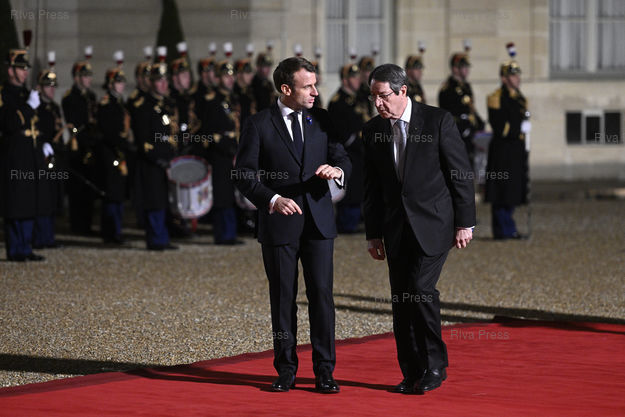 Légende : Emmanuel Macron reçoit les chefs d'Etat et de gouvernement et dirigeants d'organisations internationales participant au 2ème Forum de Paris sur la Paix pour un dîner au palais de l'Elysée. Emmanuel Macron accueille Nicos Anastasiades , président de la république de Chypre /// Emmanuel Macron receives heads of state and government and leaders of international organizations participating in the 2nd Paris Peace Forum for a dinner at the Elysée Palace. Emmanuel Macron welcomes Nicos Anastasiades , President of Cyprus - Paris - 11/11/2019 - Photo © Lionel Préau +33 (0)6 68 12 83 77