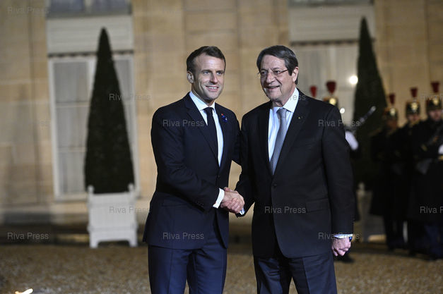 Légende : Emmanuel Macron reçoit les chefs d'Etat et de gouvernement et dirigeants d'organisations internationales participant au 2ème Forum de Paris sur la Paix pour un dîner au palais de l'Elysée. Emmanuel Macron accueille Nicos Anastasiades , président de la république de Chypre /// Emmanuel Macron receives heads of state and government and leaders of international organizations participating in the 2nd Paris Peace Forum for a dinner at the Elysée Palace. Emmanuel Macron welcomes Nicos Anastasiades , President of Cyprus - Paris - 11/11/2019 - Photo © Lionel Préau +33 (0)6 68 12 83 77