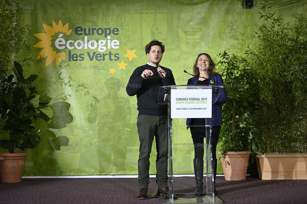 Légende : Congrès fédéral d'Europe Ecologie Les Verts (EELV), à la Bourse du Travail de Saint-Denis. Julien Bayou, porte-parole EELV élu nouveau secrétaire général du parti - Sandra Regol, porte-paroile EELV /// Congress of Europe Ecologie Les Verts Party (EELV), at Bourse du Travail of Saint-Denis. Julien Bayou, spokesperson EELV elected new Secretary General of the Party - Sandra Regol, spokeswoman EELV - Saint-Denis - 30/11/2019 - Photo © Lionel Préau +33 (0)6 68 12 83 77