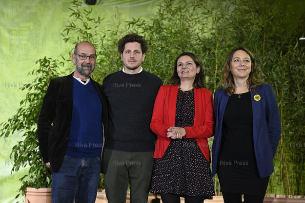 Légende : Congrès fédéral d'Europe Ecologie Les Verts (EELV), à la Bourse du Travail de Saint-Denis. Alain Coulombel - Julien Bayou, porte-parole EELV élu nouveau secrétaire général du parti - Eva Sas - Sandra Regol, porte-paroile EELV /// Congress of Europe Ecologie Les Verts Party (EELV), at Bourse du Travail of Saint-Denis. Alain Coulombel - Julien Bayou, spokesperson EELV elected new Secretary General of the Party - Eva Sas - Sandra Regol, spokeswoman EELV - Saint-Denis - 30/11/2019 - Photo © Lionel Préau +33 (0)6 68 12 83 77