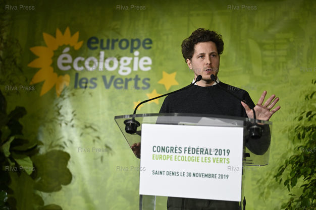 Légende : Congrès fédéral d'Europe Ecologie Les Verts (EELV), à la Bourse du Travail de Saint-Denis. Julien Bayou, nouveau secrétaire national du parti /// Congress of Europe Ecologie Les Verts Party (EELV), at Bourse du Travail of Saint-Denis. Julien Bayou, new head of the Party - Saint-Denis - 30/11/2019 - Photo © Lionel Préau +33 (0)6 68 12 83 77