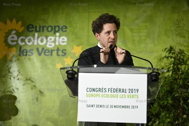 Caption : Congrès fédéral d'Europe Ecologie Les Verts (EELV), à la Bourse du Travail de Saint-Denis. Julien Bayou, nouveau secrétaire national du parti /// Congress of Europe Ecologie Les Verts Party (EELV), at Bourse du Travail of Saint-Denis. Julien Bayou, new head of the Party - Saint-Denis - 30/11/2019 - Photo © Lionel Préau +33 (0)6 68 12 83 77
