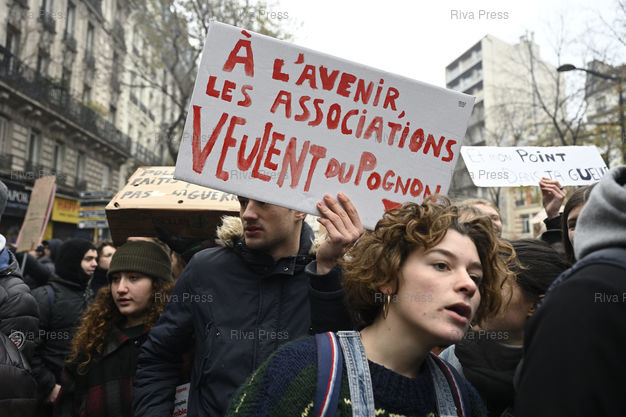 Caption : Grève et manifestation contre la réforme des retraites. Jeunes, lycéens et étudiants. "A l'avenir, les associations veulent du pognon" /// Strike and protest against pension reform. Young and students. "In the future, associations want money" - Paris - 05/12/2019 - Photo © Lionel Préau +33 (0)6 68 12 83 77