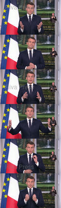 Légende : Voeux télévisés d'Emmanuel Macxron aux français depuis le palais de l'Elysée /// New Year wishes of French President Emmanuel Macron during a televised address to the nation from the Elysee Palace - Paris - 31/12/2019 - Photo © Lionel Préau +33 (0)6 68 12 83 77