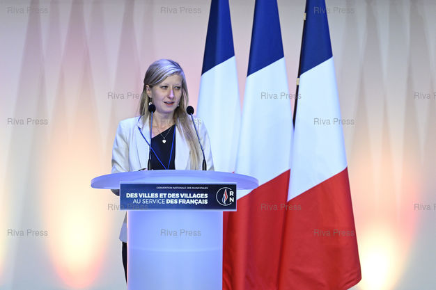 Légende : Convention municipale du Rassemblement National - Maison de la Chimie. Marie Dauchy, candidate à la mairie de Saint-Jean-de-Maurienne /// Municipal Convention of the Rassemblement National Party - Maison de la Chimie. Marie Dauchy, candidate for mayor of Saint-Jean-de-Maurienne - Paris - 12/01/2020 - Photo © Lionel Préau +33 (0)6 68 12 83 77