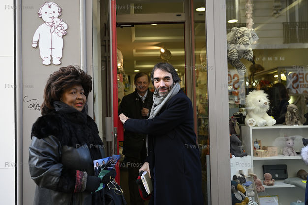 Légende : Cédric Villani, candidat à la mairie de Paris, rencontre les commerçants et l'association des commerçants de la rue du Commerce dans le 15ème arrondissement. En présence de Géraud Guibert, chef de file pour le 15eme /// Cédric Villani, candidate for mayor of Paris, meets merchants and the association of merchants of rue du Commerce in the 15th arrondissement. With Géraud Guibert, head of list for the 15th - Paris - 18/01/2020 - Photo © Lionel Préau +33 (0)6 68 12 83 77
