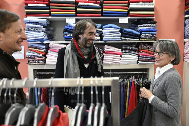 Légende : Cédric Villani, candidat à la mairie de Paris, rencontre les commerçants et l'association des commerçants de la rue du Commerce dans le 15ème arrondissement. En présence de Géraud Guibert, chef de file pour le 15eme /// Cédric Villani, candidate for mayor of Paris, meets merchants and the association of merchants of rue du Commerce in the 15th arrondissement. With Géraud Guibert, head of list for the 15th - Paris - 18/01/2020 - Photo © Lionel Préau +33 (0)6 68 12 83 77