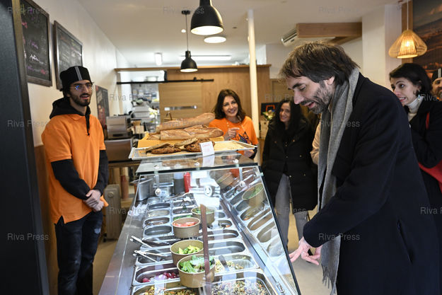 Légende : Cédric Villani, candidat à la mairie de Paris, rencontre les commerçants et l'association des commerçants de la rue du Commerce dans le 15ème arrondissement /// Cédric Villani, candidate for mayor of Paris, meets merchants and the association of merchants of rue du Commerce in the 15th arrondissement - Paris - 18/01/2020 - Photo © Lionel Préau +33 (0)6 68 12 83 77