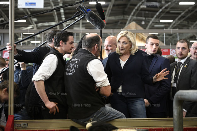 Légende : Marine Le Pen, présidente du Rassemblement National, visite le Salon de l'agriculture. Echange avec des éleveurs, en présence de Jordan Bardella, député européen /// Marine Le Pen, President of the Rassemblement National far-right Party, visits the Agricultural Show. Exchange with breeders. With Jordan Bardella, MEP - Paris - 25/02/2020 - Photo © Lionel Préau +33 (0)6 68 12 83 77