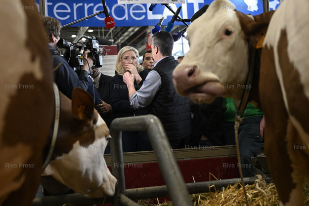 Légende : Marine Le Pen, présidente du Rassemblement National, visite le Salon de l'agriculture. Echange avec des éleveurs /// Marine Le Pen, President of the Rassemblement National far-right Party, visits the Agricultural Show. Exchange with breeders - Paris - 25/02/2020 - Photo © Lionel Préau +33 (0)6 68 12 83 77
