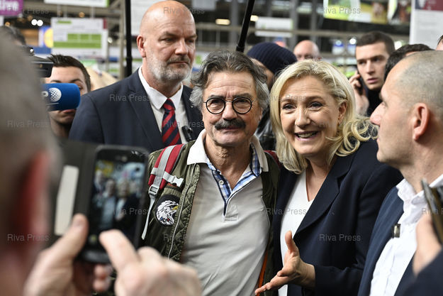 Légende : Marine Le Pen, présidente du Rassemblement National, visite le Salon de l'agriculture. En présence de Thierry Légier, garde du corps /// Marine Le Pen, President of the Rassemblement National far-right Party, visits the Agricultural Show. With Thierry Légier, bodyguard - Paris - 25/02/2020 - Photo © Lionel Préau +33 (0)6 68 12 83 77