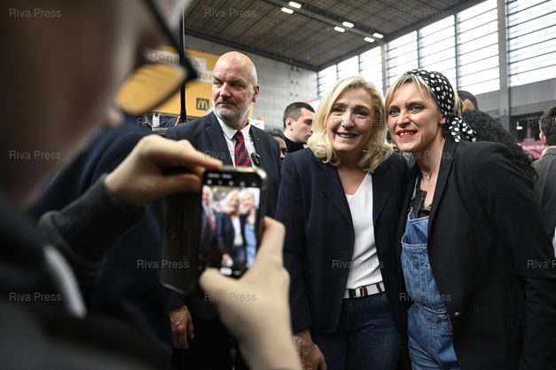 Légende : Marine Le Pen, présidente du Rassemblement National, visite le Salon de l'agriculture. En présence de Thierry Légier, garde du corps /// Marine Le Pen, President of the Rassemblement National far-right Party, visits the Agricultural Show. With Thierry Légier, bodyguard - Paris - 25/02/2020 - Photo © Lionel Préau +33 (0)6 68 12 83 77