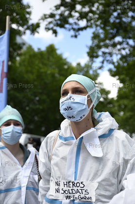 Légende : Les personnels soignants manifestent à l'appel de syndicats et collectifs hospitaliers pour que le gouvernement prenne en compte l'ensemble de leurs revendications /// Healthcare workers demonstrate at the call of unions and hospital collectives for the government to take into account all of their demands - Paris - 16/06/2020 - Photo © Lionel Préau +33 (0)6 68 12 83 77