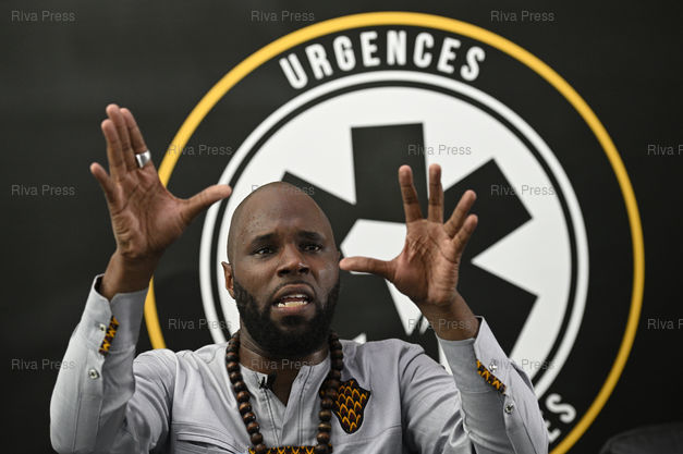 Légende : Kémi Séba, polémiste franco-béninois anticolonialiste, ex-leader de Tribu Ka, groupuscule pour la séparation raciale dissout en 2006, président de l'ONG Urgences Panafricanistes, s'exprime lors d'une conférence de presse, durant laquelle il a prôné un "Black Power" centré sur l'identité africaine, incompatible selon lui avec les revendications du mouvement "Black Lives Matter" /// Kémi Séba, Franco-Beninese anti-colonialist polemicist, ex-leader of Tribu Ka, movement in favour of racial separation dissolved in 2006, president of the NGO Urgences Panafricanistes, speaks during a press conference press conference, during which he advocated a "Black Power" centered on African identity, incompatible according to him with the demands of the movement "Black Lives Matter" - Paris - 26/06/2020 - Photo © Lionel Préau +33 (0)6 68 12 83 77