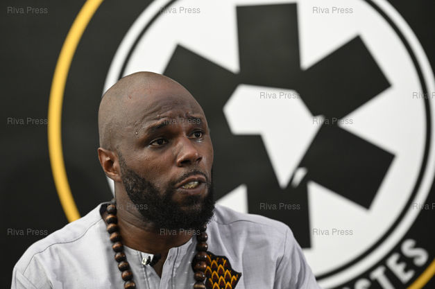 Légende : Kémi Séba, polémiste franco-béninois anticolonialiste, ex-leader de Tribu Ka, groupuscule pour la séparation raciale dissout en 2006, président de l'ONG Urgences Panafricanistes, s'exprime lors d'une conférence de presse, durant laquelle il a prôné un "Black Power" centré sur l'identité africaine, incompatible selon lui avec les revendications du mouvement "Black Lives Matter" /// Kémi Séba, Franco-Beninese anti-colonialist polemicist, ex-leader of Tribu Ka, movement in favour of racial separation dissolved in 2006, president of the NGO Urgences Panafricanistes, speaks during a press conference press conference, during which he advocated a "Black Power" centered on African identity, incompatible according to him with the demands of the movement "Black Lives Matter" - Paris - 26/06/2020 - Photo © Lionel Préau +33 (0)6 68 12 83 77