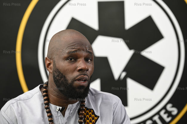 Légende : Kémi Séba, polémiste franco-béninois anticolonialiste, ex-leader de Tribu Ka, groupuscule pour la séparation raciale dissout en 2006, président de l'ONG Urgences Panafricanistes, s'exprime lors d'une conférence de presse, durant laquelle il a prôné un "Black Power" centré sur l'identité africaine, incompatible selon lui avec les revendications du mouvement "Black Lives Matter" /// Kémi Séba, Franco-Beninese anti-colonialist polemicist, ex-leader of Tribu Ka, movement in favour of racial separation dissolved in 2006, president of the NGO Urgences Panafricanistes, speaks during a press conference press conference, during which he advocated a "Black Power" centered on African identity, incompatible according to him with the demands of the movement "Black Lives Matter" - Paris - 26/06/2020 - Photo © Lionel Préau +33 (0)6 68 12 83 77
