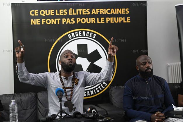 Légende : Kémi Séba, polémiste franco-béninois anticolonialiste, ex-leader de Tribu Ka, groupuscule pour la séparation raciale dissout en 2006, président de l'ONG Urgences Panafricanistes, s'exprime lors d'une conférence de presse, durant laquelle il a prôné un "Black Power" centré sur l'identité africaine, incompatible selon lui avec les revendications du mouvement "Black Lives Matter" /// Kémi Séba, Franco-Beninese anti-colonialist polemicist, ex-leader of Tribu Ka, movement in favour of racial separation dissolved in 2006, president of the NGO Urgences Panafricanistes, speaks during a press conference press conference, during which he advocated a "Black Power" centered on African identity, incompatible according to him with the demands of the movement "Black Lives Matter" - Paris - 26/06/2020 - Photo © Lionel Préau +33 (0)6 68 12 83 77