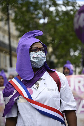 Légende : Manifestation de personnels hospitaliers à l'appel de plusieurs organisations syndicales, dont la CGT et Solidaires ainsi que du Collectif Inter-Hôpitaux, , soutenue par les Gilets jaunes, pour réclamer plus de moyens pour l'hôpital /// Demonstration of hospital staff at the call of several union organizations, including the CGT and Solidaires as well as the Inter-Hospital Collective, supported by the yellow vests, to demand more resources for the hospital - Paris - 14/07/2020 - Photo © Lionel Préau +33 (0)6 68 12 83 77
