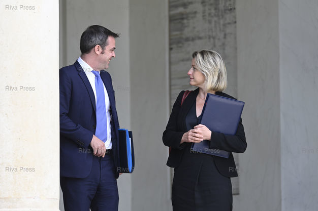 Caption : Conseil des ministres au palais de l'Elysée. Olivier Véran, ministre des Solidarités et de la Santé - Barbara Pompili, ministre de la Transition écologique /// Cabinet meeting at the Elysee Palace. Olivier Véran, Minister of the Solidarities and Health - Barbara Pompili, Minister of Ecological Transition - Paris - 15/07/2020 - Photo © Lionel Préau +33 (0)6 68 12 83 77