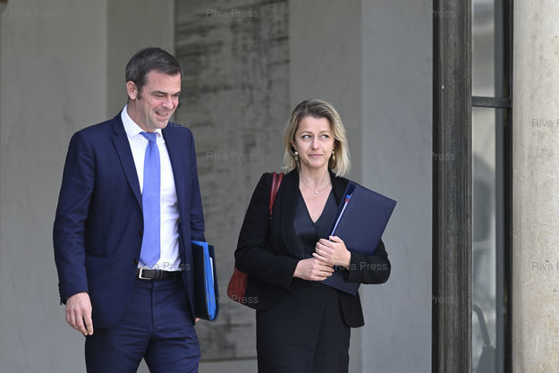 Légende : Conseil des ministres au palais de l'Elysée. Olivier Véran, ministre des Solidarités et de la Santé - Barbara Pompili, ministre de la Transition écologique /// Cabinet meeting at the Elysee Palace. Olivier Véran, Minister of the Solidarities and Health - Barbara Pompili, Minister of Ecological Transition - Paris - 15/07/2020 - Photo © Lionel Préau +33 (0)6 68 12 83 77