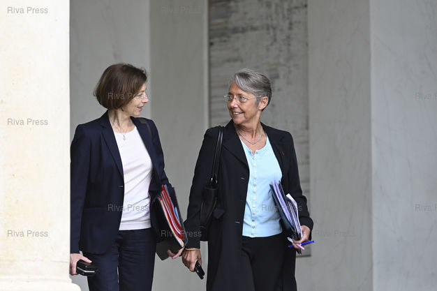 Légende : Conseil des ministres au palais de l'Elysée. Florence Parly, ministre des Armées - Elisabeth Borne, ministre du Travail, de l'Emploi et de l'Insertion /// Cabinet meeting at the Elysee Palace. Florence Parly, Minister of the Armed Forces - Elisabeth Borne, Minister of Labor, Employment and Integration - Paris - 15/07/2020 - Photo © Lionel Préau +33 (0)6 68 12 83 77
