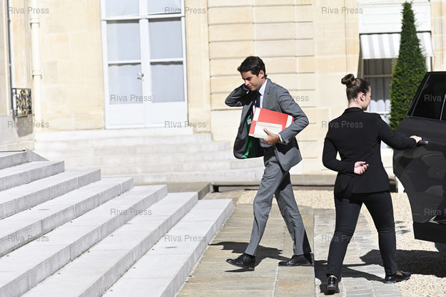 Légende : Conseil de défense écologique au palais de l'Elysée, à l'issue duquel les premières mesures issues de la Convention Citoyenne pour le Climat ont été annoncées (interdiction des terrasses chauffées, fin des chaudières au fioul,...). Gabriel Attal, porte-parole du Gouvernement /// Ecological defense council at the Elysée Palace, at the end of which the first measures resulting from the Citizen's Convention for the Climate were announced (ban on heated terraces, end of oil-fired boilers,...). Gabriel Attal, spokesperson of the Government - Paris - 27/07/2020 - Photo © Lionel Préau +33 (0)6 68 12 83 77