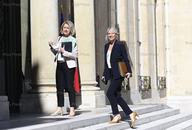 Caption : Conseil de défense écologique au palais de l'Elysée, à l'issue duquel les premières mesures issues de la Convention Citoyenne pour le Climat ont été annoncées (interdiction des terrasses chauffées, fin des chaudières au fioul,...). Barbara Pompili, ministre de la Transition écologique - Bérangère Abba, secrétaire d'Etat chargée de la biodiversité /// Ecological defense council at the Elysée Palace, at the end of which the first measures resulting from the Citizen's Convention for the Climate were announced (ban on heated terraces, end of oil-fired boilers,...). Barbara Pompili, Minister of Ecological Transition - Bérangère Abba, Junior Minister in charge of biodiversity - Paris - 27/07/2020 - Photo © Lionel Préau +33 (0)6 68 12 83 77