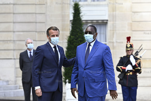 Légende : Emmanuel Macron reçoit Macky Sall, Président de la République du Sénégal, pour un déjeuner de travail au Palais de l'Elysée /// Emmanuel Macron receives Macky Sall, President of the Republic of Senegal, for a working lunch at the Elysée Palace - Paris - 26/08/2020 - Photo © Lionel Préau +33 (0)6 68 12 83 77 contact@lionelpreau.com