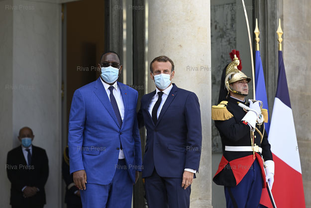 Légende : Emmanuel Macron reçoit Macky Sall, Président de la République du Sénégal, pour un déjeuner de travail au Palais de l'Elysée /// Emmanuel Macron receives Macky Sall, President of the Republic of Senegal, for a working lunch at the Elysée Palace - Paris - 26/08/2020 - Photo © Lionel Préau +33 (0)6 68 12 83 77 contact@lionelpreau.com