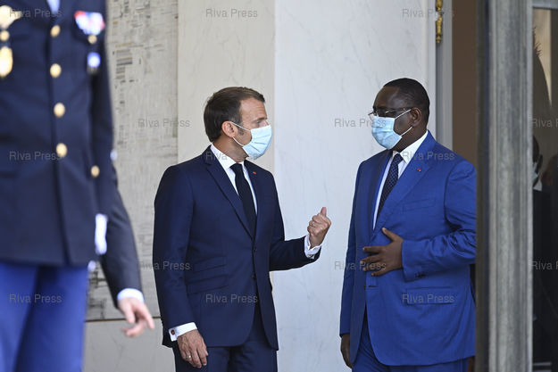 Légende : Emmanuel Macron reçoit Macky Sall, Président de la République du Sénégal, pour un déjeuner de travail au Palais de l'Elysée /// Emmanuel Macron receives Macky Sall, President of the Republic of Senegal, for a working lunch at the Elysée Palace - Paris - 26/08/2020 - Photo © Lionel Préau +33 (0)6 68 12 83 77 contact@lionelpreau.com