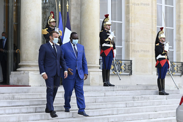 Légende : Emmanuel Macron reçoit Macky Sall, Président de la République du Sénégal, pour un déjeuner de travail au Palais de l'Elysée /// Emmanuel Macron receives Macky Sall, President of the Republic of Senegal, for a working lunch at the Elysée Palace - Paris - 26/08/2020 - Photo © Lionel Préau +33 (0)6 68 12 83 77 contact@lionelpreau.com