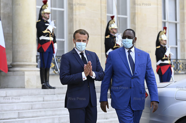 Légende : Emmanuel Macron reçoit Macky Sall, Président de la République du Sénégal, pour un déjeuner de travail au Palais de l'Elysée /// Emmanuel Macron receives Macky Sall, President of the Republic of Senegal, for a working lunch at the Elysée Palace - Paris - 26/08/2020 - Photo © Lionel Préau +33 (0)6 68 12 83 77 contact@lionelpreau.com